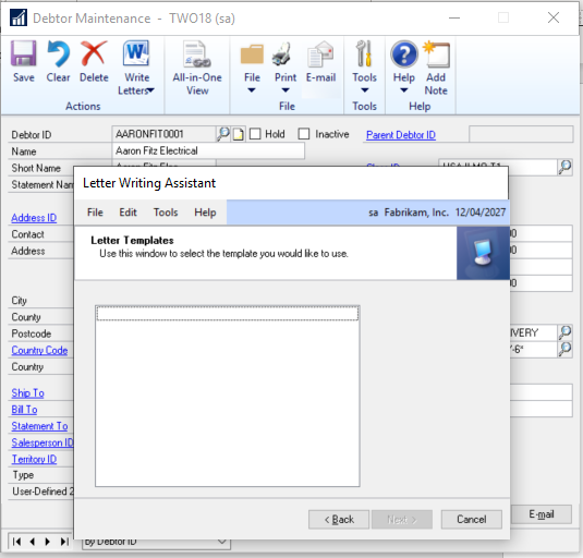 Following a recent client upgrade of Dynamics GP to version 2018 R2 I found that when selecting “Write Letters > Print Debtors” the window was blank: