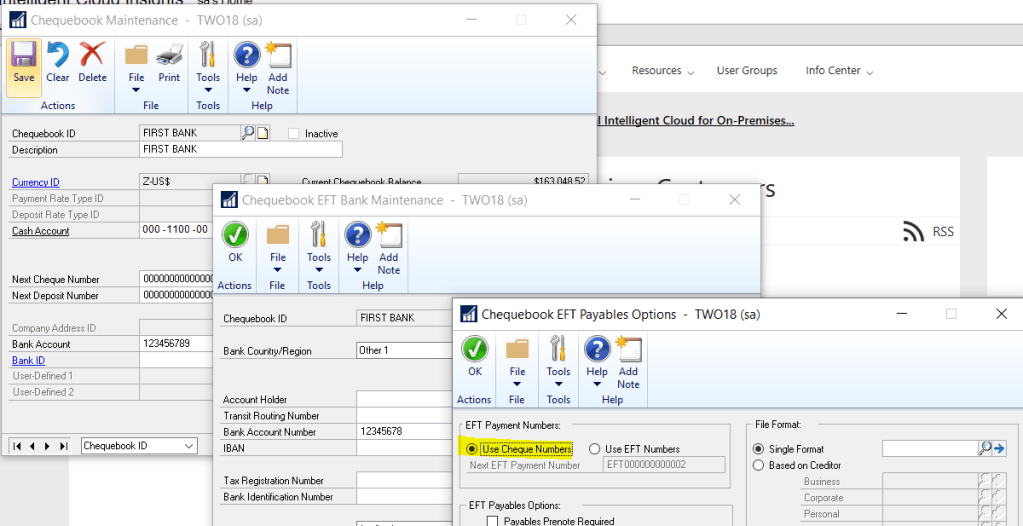 When I selected “Use EFT Numbers” the bank management module is updated.