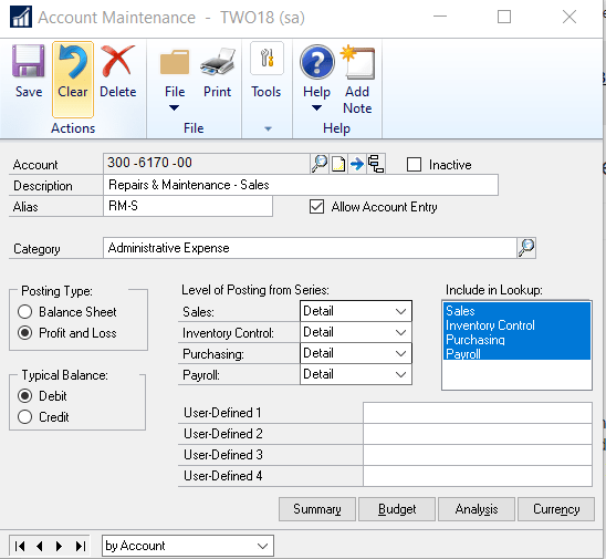 **Please note you can extend the analysis in Dynamics GP with Multi Dimensional Analysis (MDA) or Analytical Accounting (AA) which I won’t cover in detail in this post. For example you might require additional analysis for a particular project which can be achieved with MDA or AA.