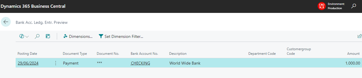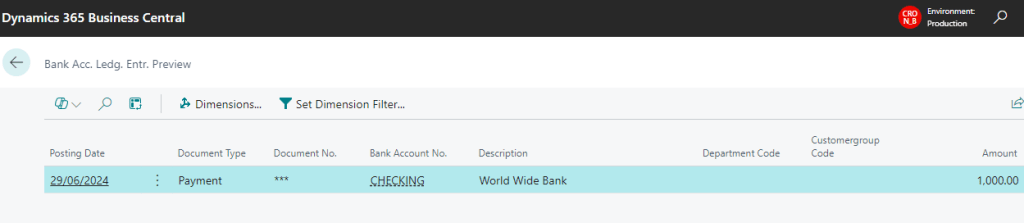 We also get a Bank Account Ledger Entry we can reconcile when we come to do the Bank Reconciliation