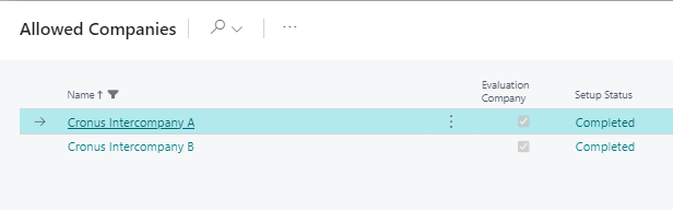 The companies in Business Central in my scenario are called “Cronus Intercompany Company A” and “Cronus Intercompany Company B”