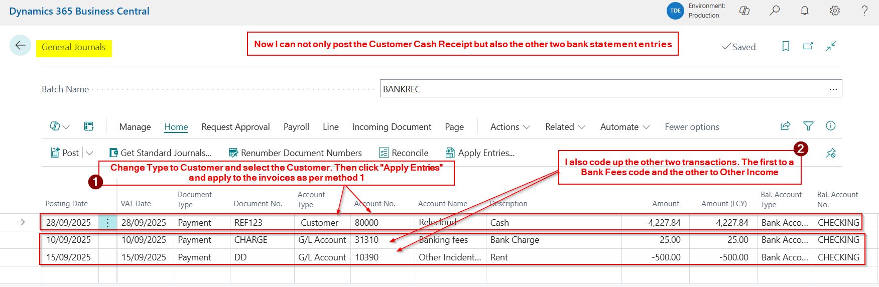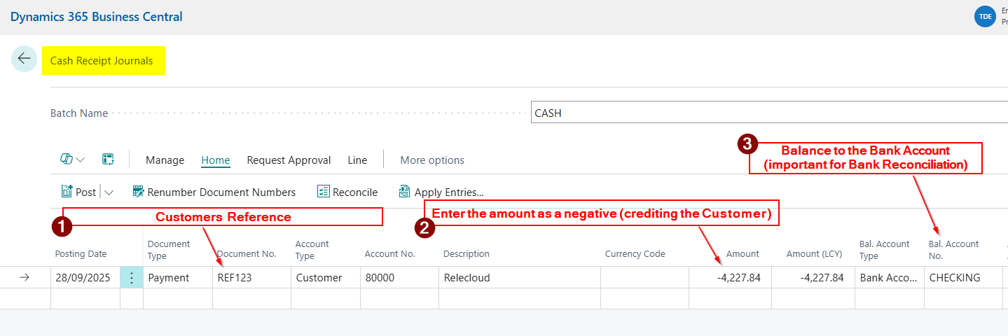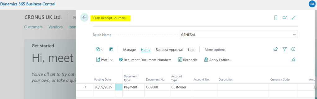 Dynamics 365 Business Central – Three ways to post Sales Ledger Cash Receipts in Business Central