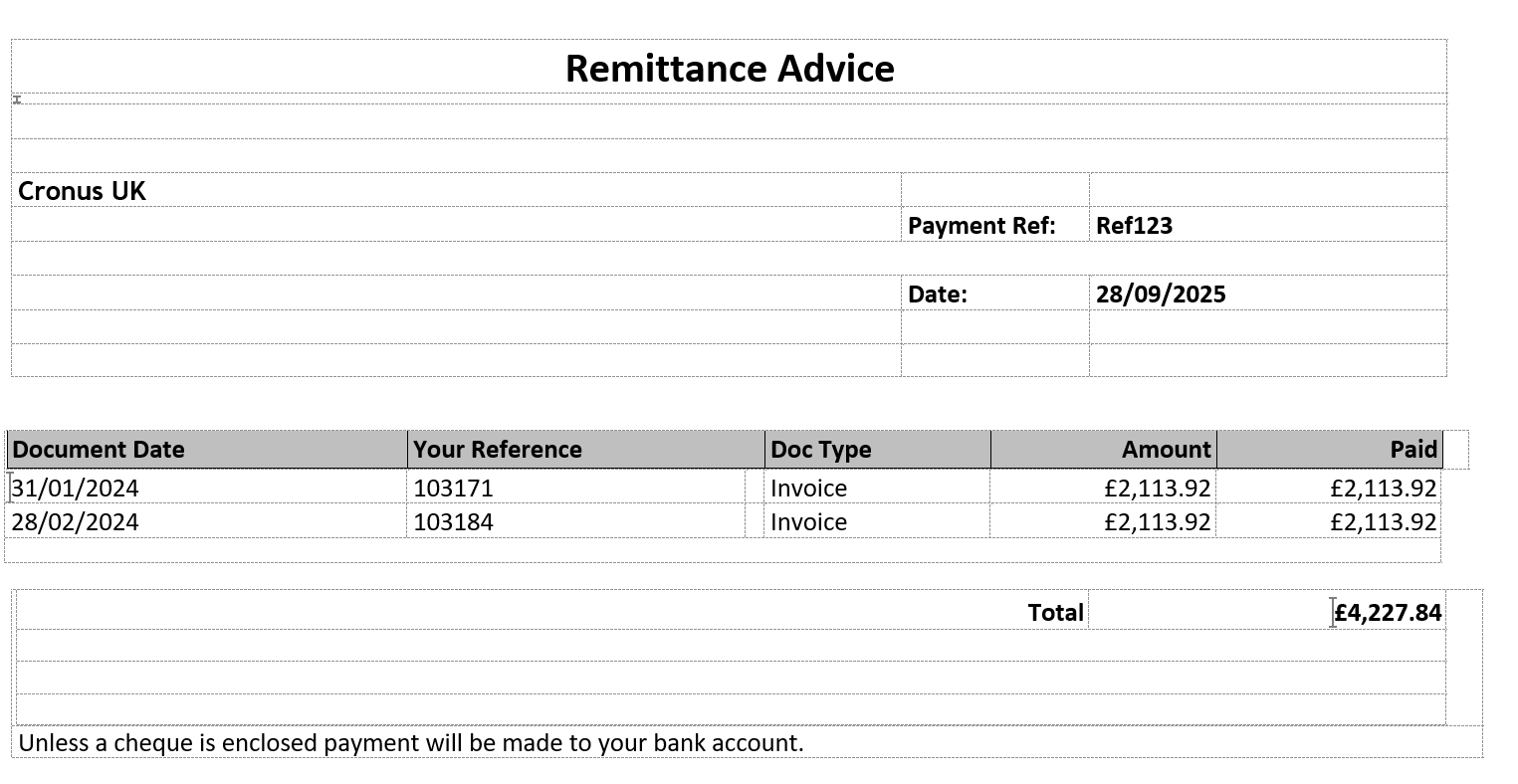 Now I’ll enter the Cash Receipt using the following Remittance Advice that the Customer has sent: