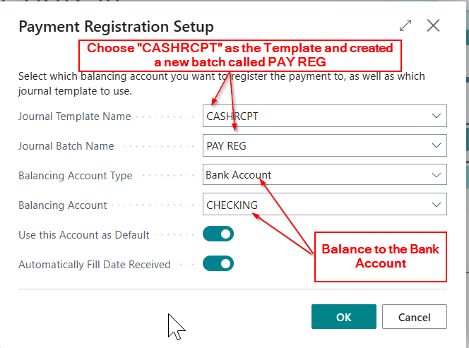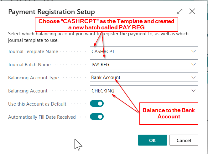 This feature requires a little setup, therefore prior to posting the cash, you must open the “Payment Registration Setup” page and complete the setup.