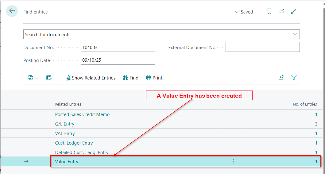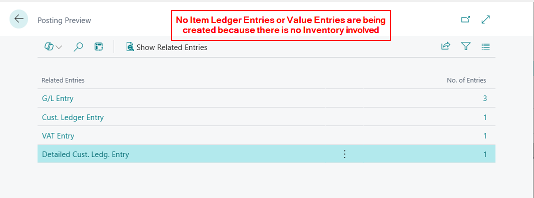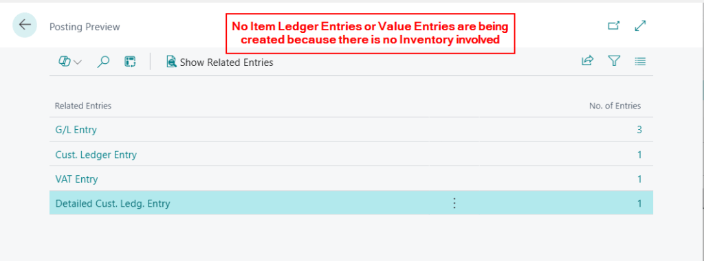 As you can see there are no Item Ledger Entries being created, which is great, as we don’t want to adjust Inventory quantities, however there is also no Value Entry.