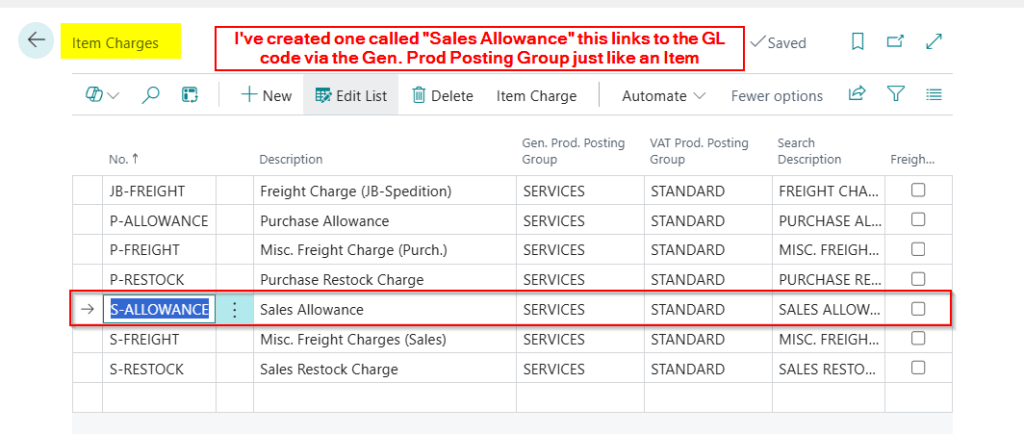 Another method we could use to raise the Credit Note is by using an Item Charge rather than a G/L Account.