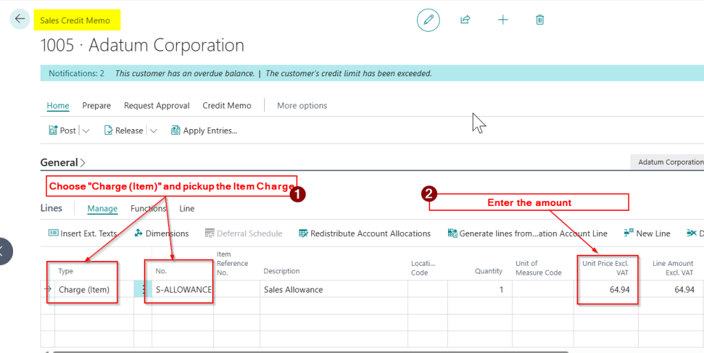 Credit Memo using Item Charges