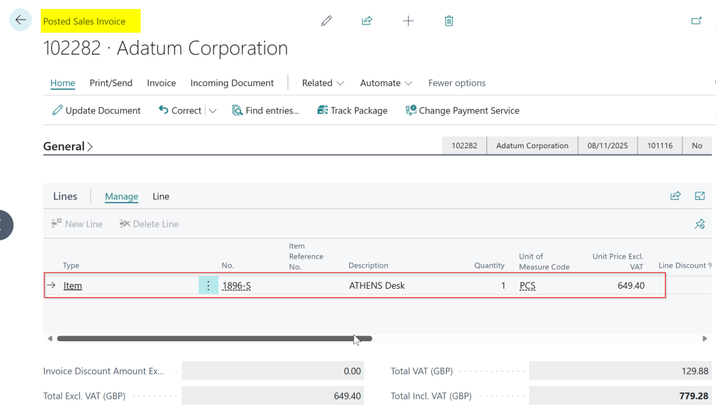 We now have an accurate “Sales Amount (Actual)” being recorded in Business Central.