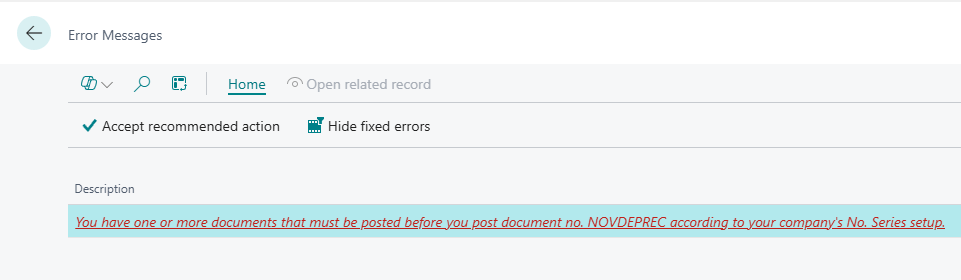 When posting a Journal in Business Central you receive the message “You have one or more documents that must be posted before you post document no..<docno>..according to your company’s No. Series setup”.
