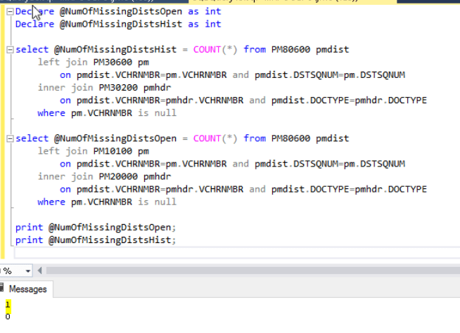 The first thing we did was to find all the Dynamics GP tables that contained the VCHNMBR column. To do this we used the script below: