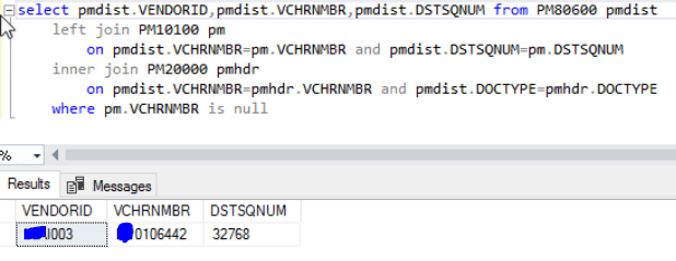 This gave us a full list of tables that contained the VCHRNMBR column.