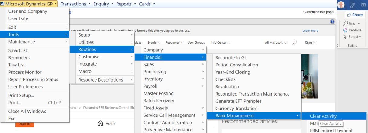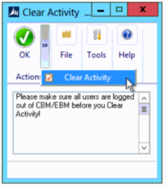 Select “Tools > Routines > Financial > Bank Management > Clear Activity”