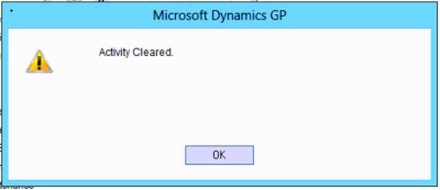 After doing this you will be prompted with the message below confirming activity is cleared