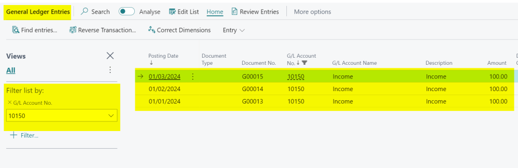 I’ll therefore add my new Dimension, SEASON, as my “Shortcut Dimension 3 Code”
