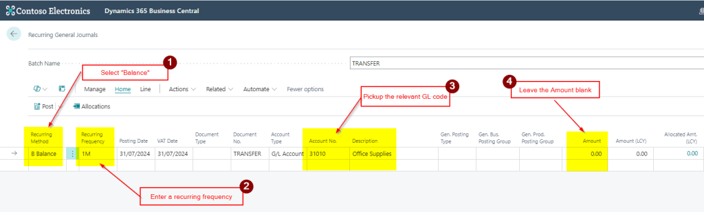Now I’ve created the new Dimension, I’ll use it in a General Journal, however on first inspection its not available as a column for me to use?