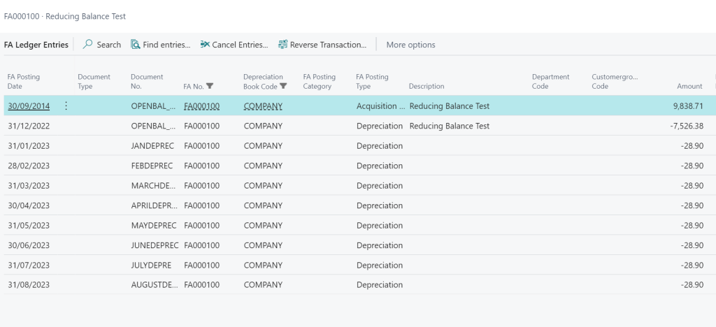 Dynamics 365 Business Central – How I post opening balances for reducing balance Fixed Assets