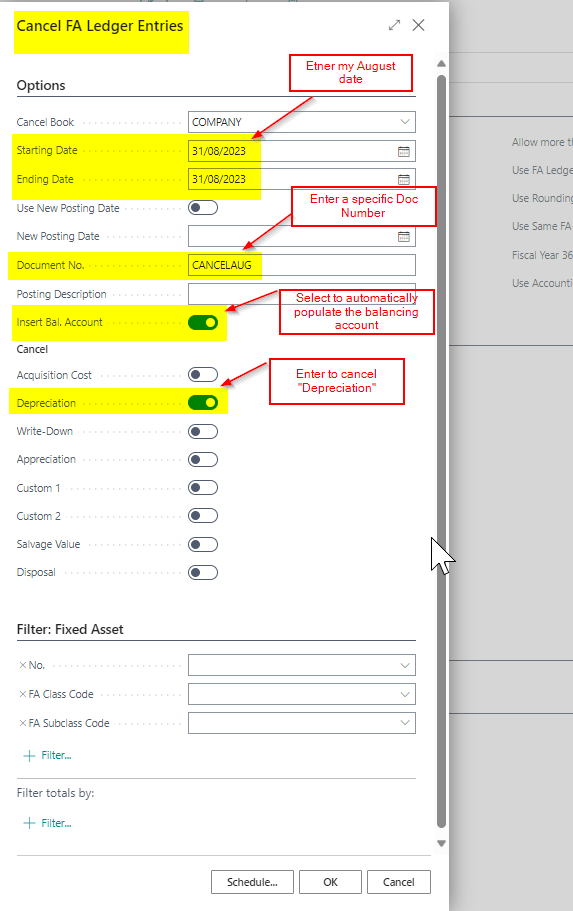 Dynamics 365 Business Central – How to cancel a full month of Depreciation in the Fixed Assets module