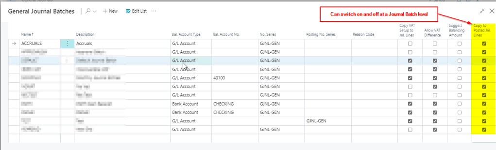 With this option enabled any journal that’s subsequently posted creates “Posted Gen. Journal Lines” in addition to the usual General Ledger Entries.