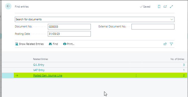 For example I clicked “Find Entries” on a General Ledger Entry and I can see additional “Posted Gen. Journal Lines”