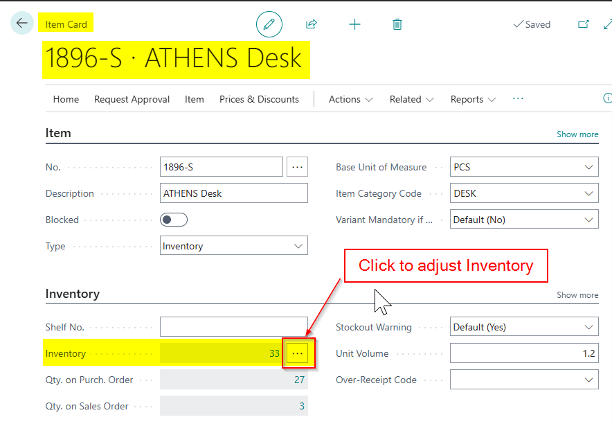 Now that I’ve enabled this option, I can manually adjust the inventory directly from the Item card. Let’s give it a try.