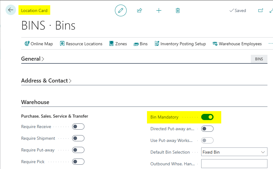 Why is the system not allowing me to manually adjust Inventory for the BINS location? As we have previously seen, this isn’t a location specific settings, its a global setting in the “Inventory Setup”