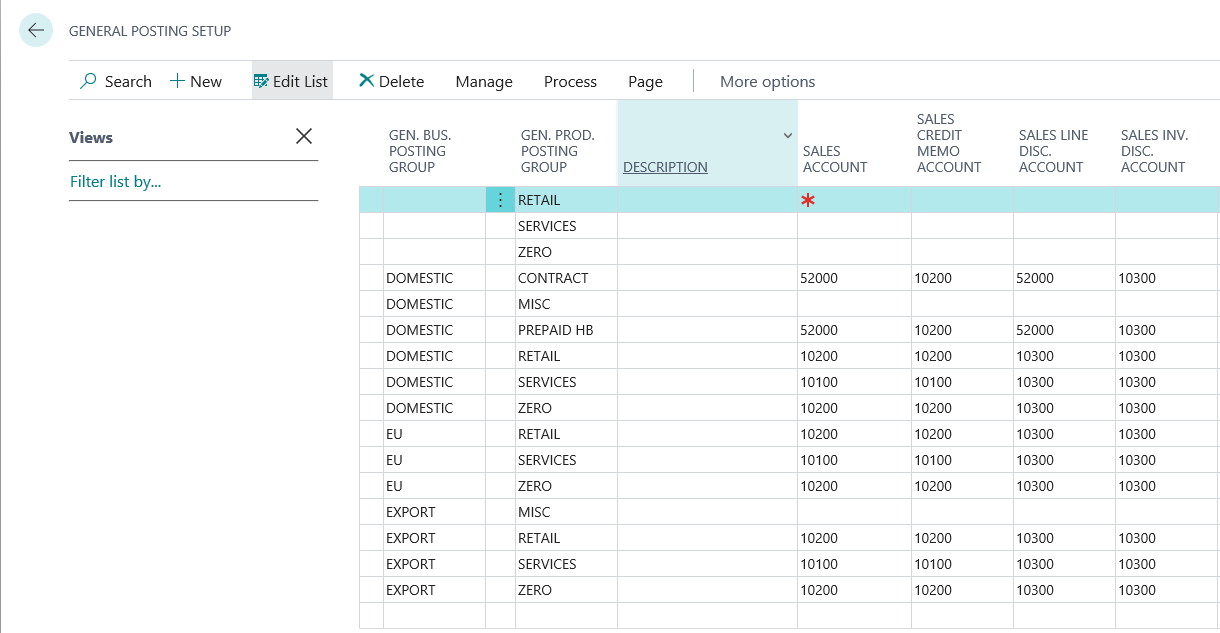 As you can see the posting groups form a matrix and the combination of “Business” (labelled Gen. Bus. Posting Group in the window) and “Product” (labelled Gen. Prod. Posting Group in the window) determines the General Ledger codes used when you post a transaction.