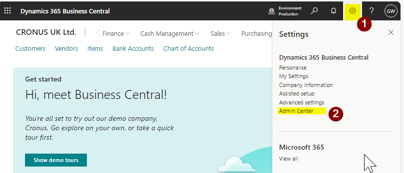 Once in Business Central you can see you have the Copilot icon in the Application Bar